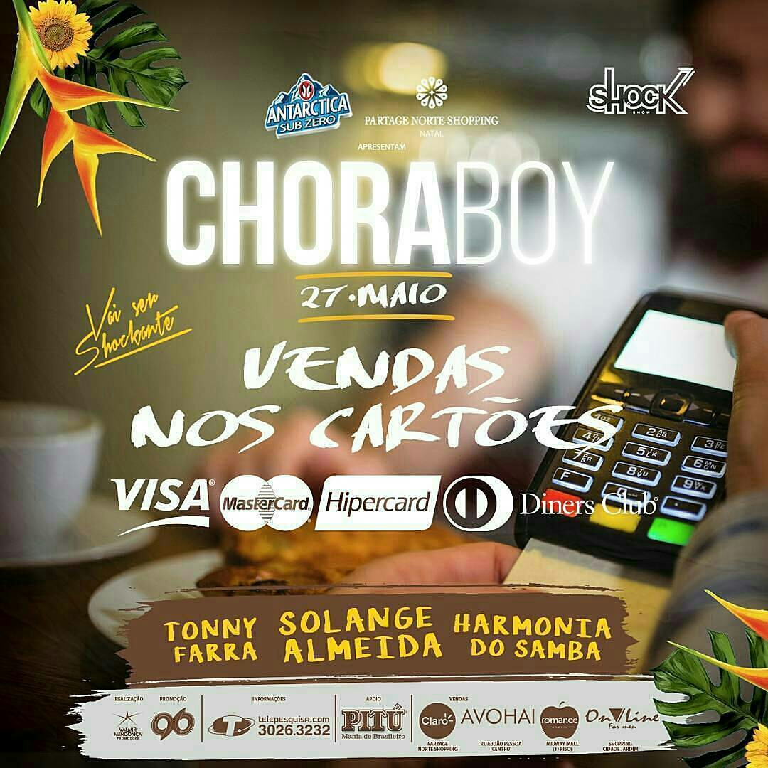 Chora Boy - Vendas de ingressos nos cartões de crédito ou débito