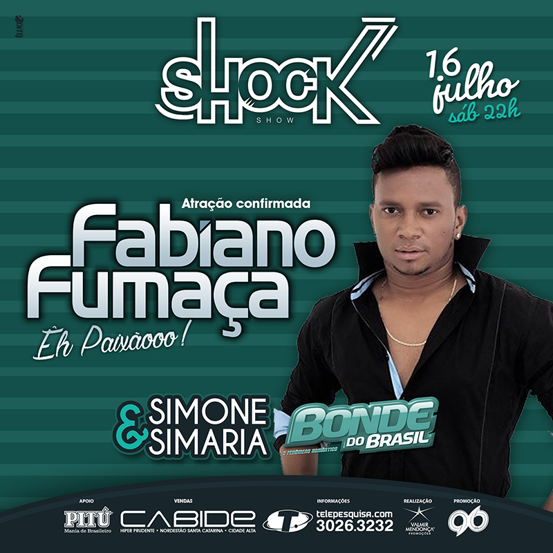 Fabiano Fumaça, atração confirmada nas FÉRIAS DE JULHO, dia 16, na Shock Show. Cheguem cedo, os portões abrem as 21h.