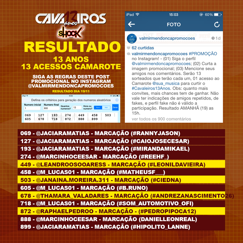 Resultado de promoção Camarote @sua_musica - Participação válida: