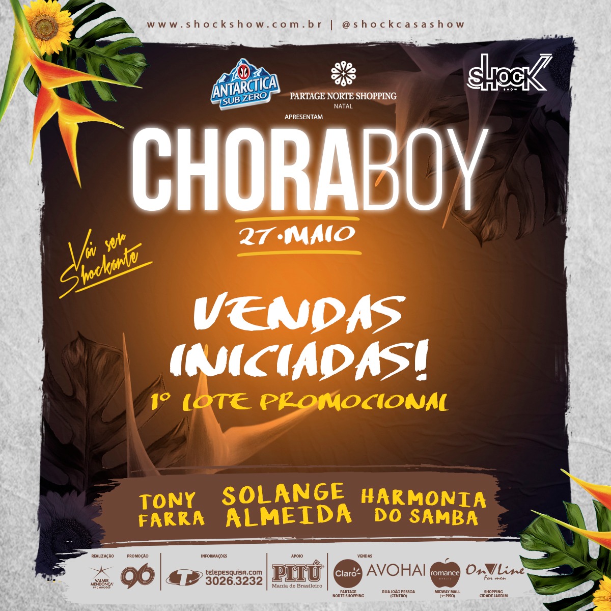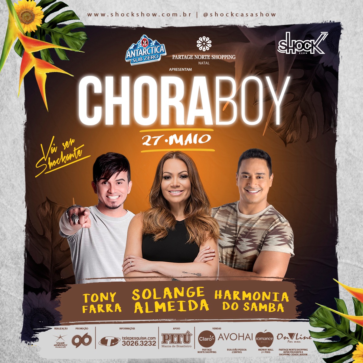 Vai ser SHOCKANTE! Vendas iniciadas p/ o show de Solange Almeida, Harmonia do Samba e Tonny Farra, dia 27 de Maio