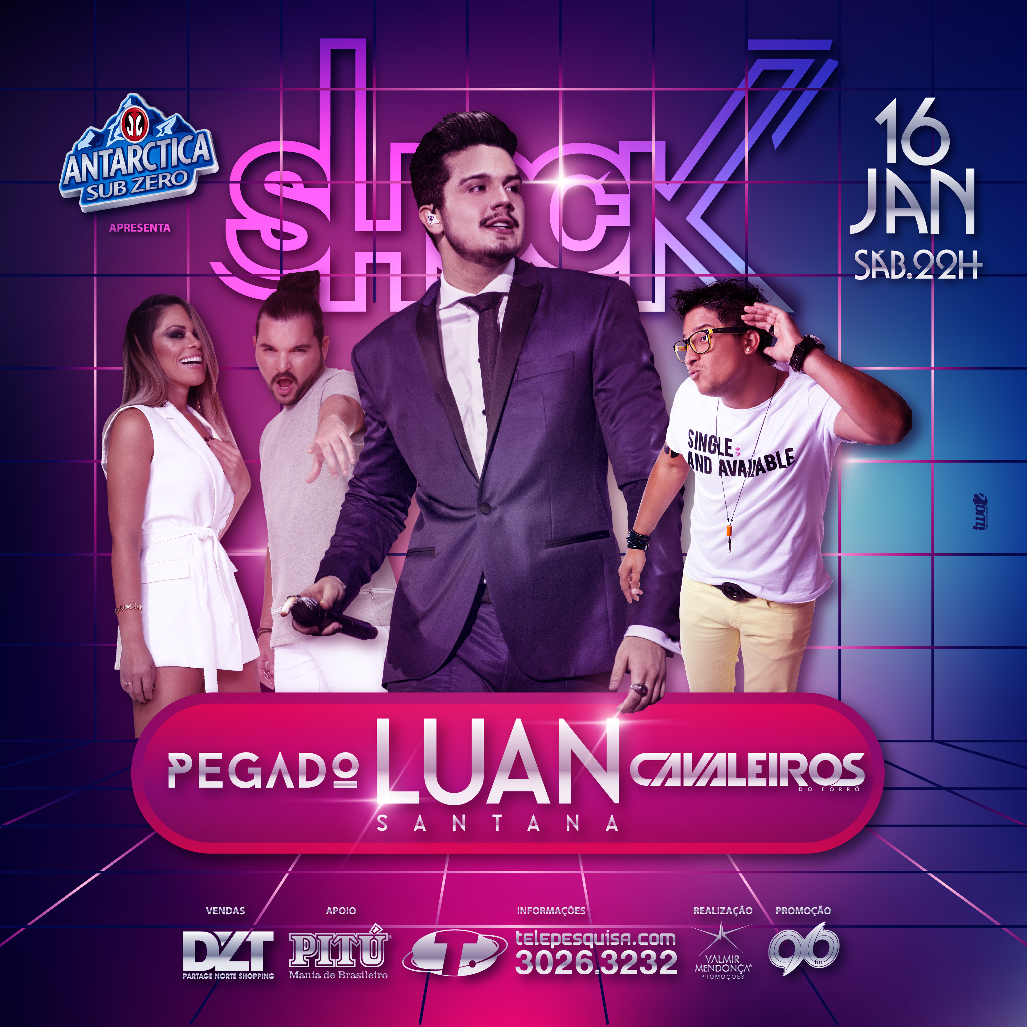 Vendas a partir de SEXTA (11) na DLT Partage Norte Shopping. Luan Santana, Pegado e Cavaleiros, na Shock Show