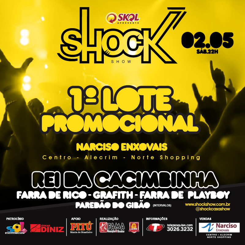 VENDAS INICIADAS (1º LOTE) - Rei da Cacimbinha, Farra de Rico, Banda Grafith, Farra de Playboy e Paredão do Gibão na Shock Show